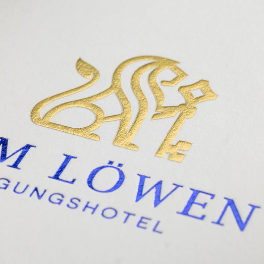 Wir veredeln auf Wunsch mit Heißfolienprägung in Gold, Silber oder Weiß; als kostengünstigere Alternative bieten wir hochwertigen Weißdruck. Ergänzend setzen wir hochwertige Kantenveredelung ein. Kurz: Nahezu alle Papierveredelungen sind auf unseren schwarzen Karten möglich.
