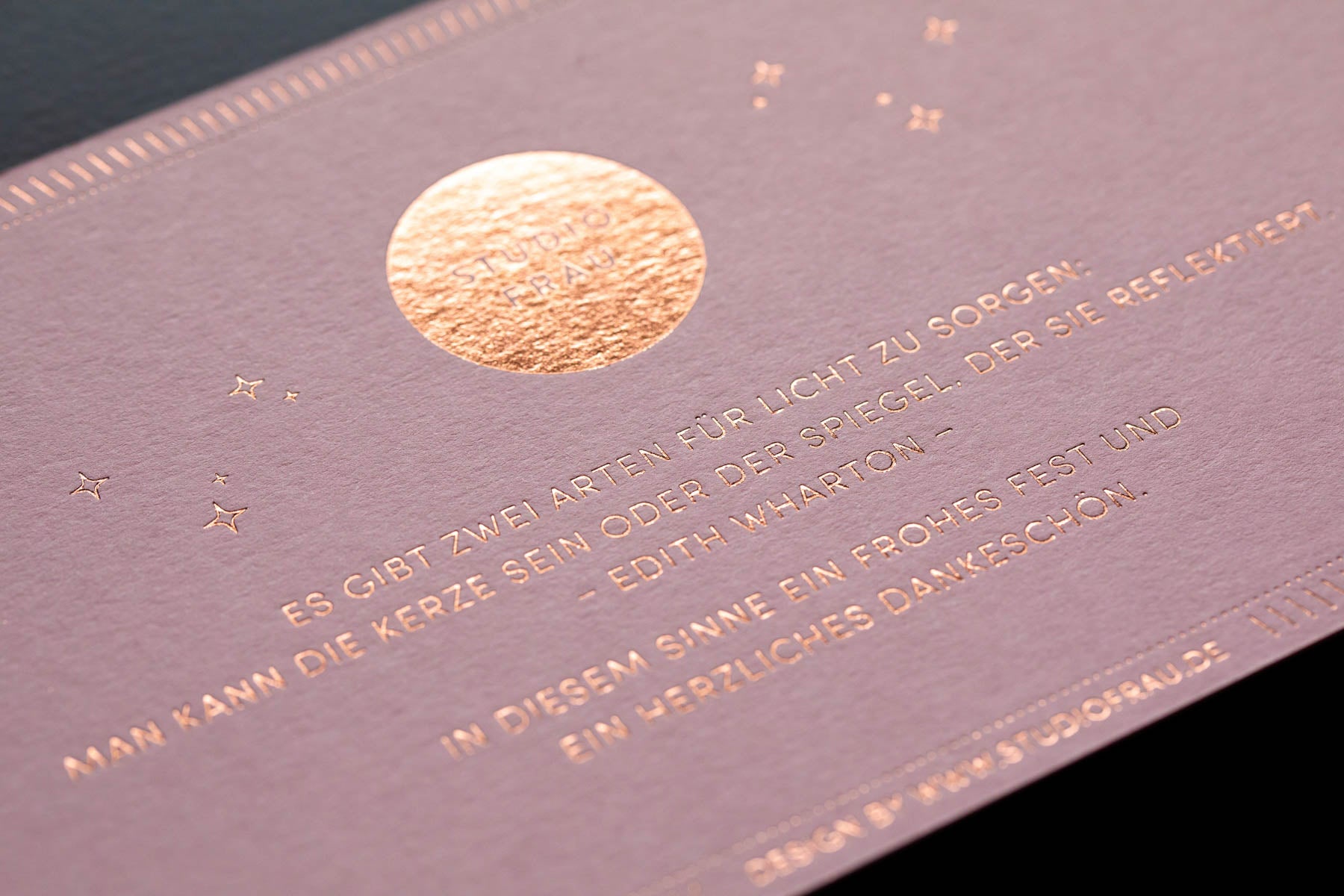 Stolz fertigt exklusive Visitenkarten, Einladungen und Geschäftsdrucksachen. Mit edlen Papieren und präzisen Veredelungstechniken entstehen Druckwerke, die unverwechselbar sind.
