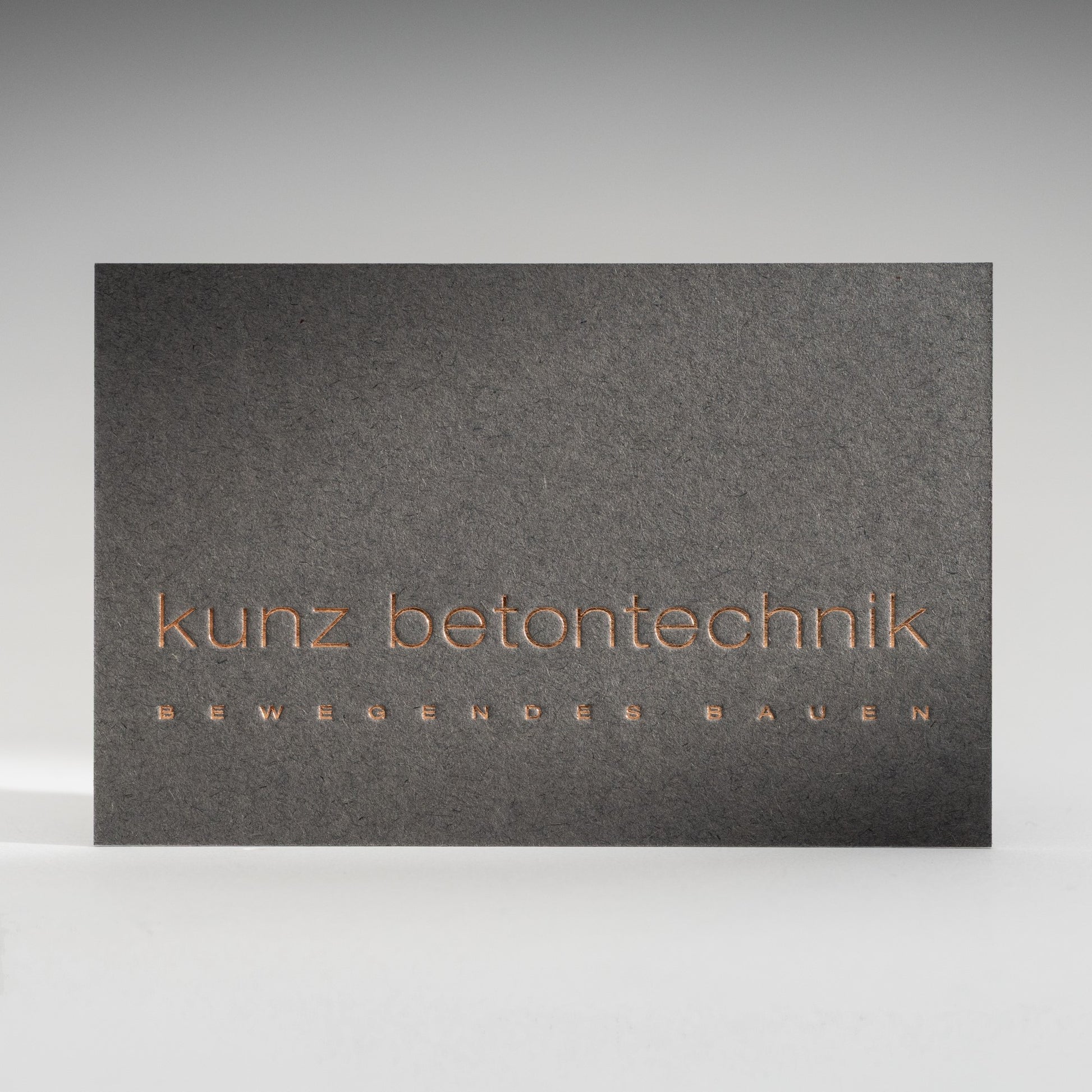 Colorplan Visitenkarte mit Heißfolienprägung: Beispiel KUNZ BETONTECHNIK