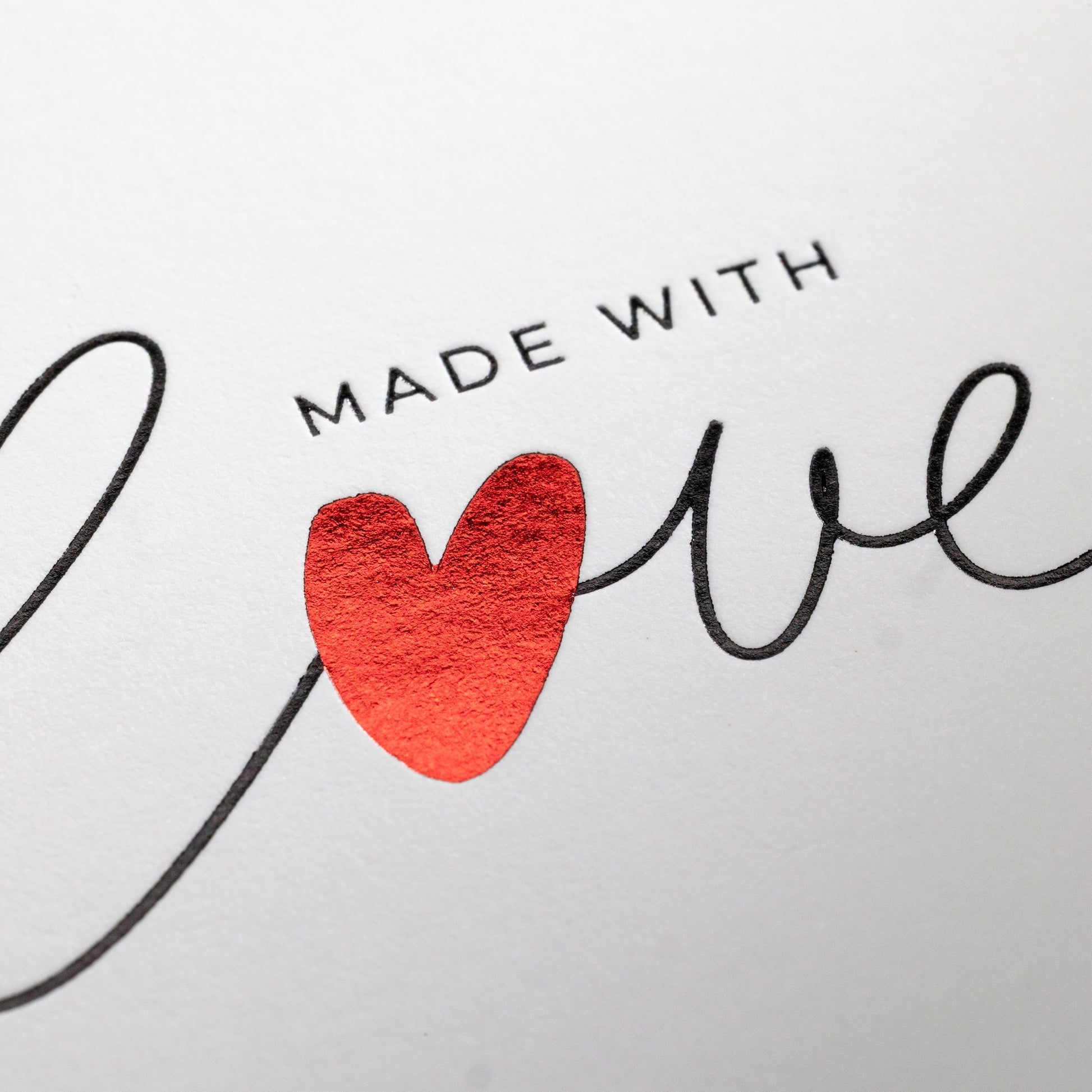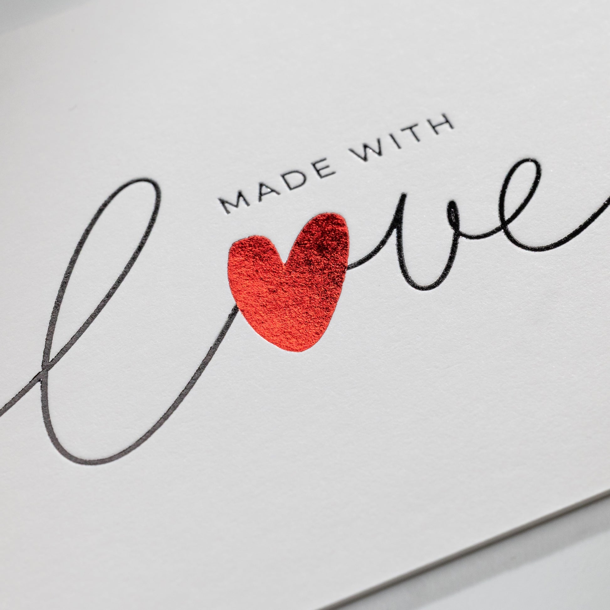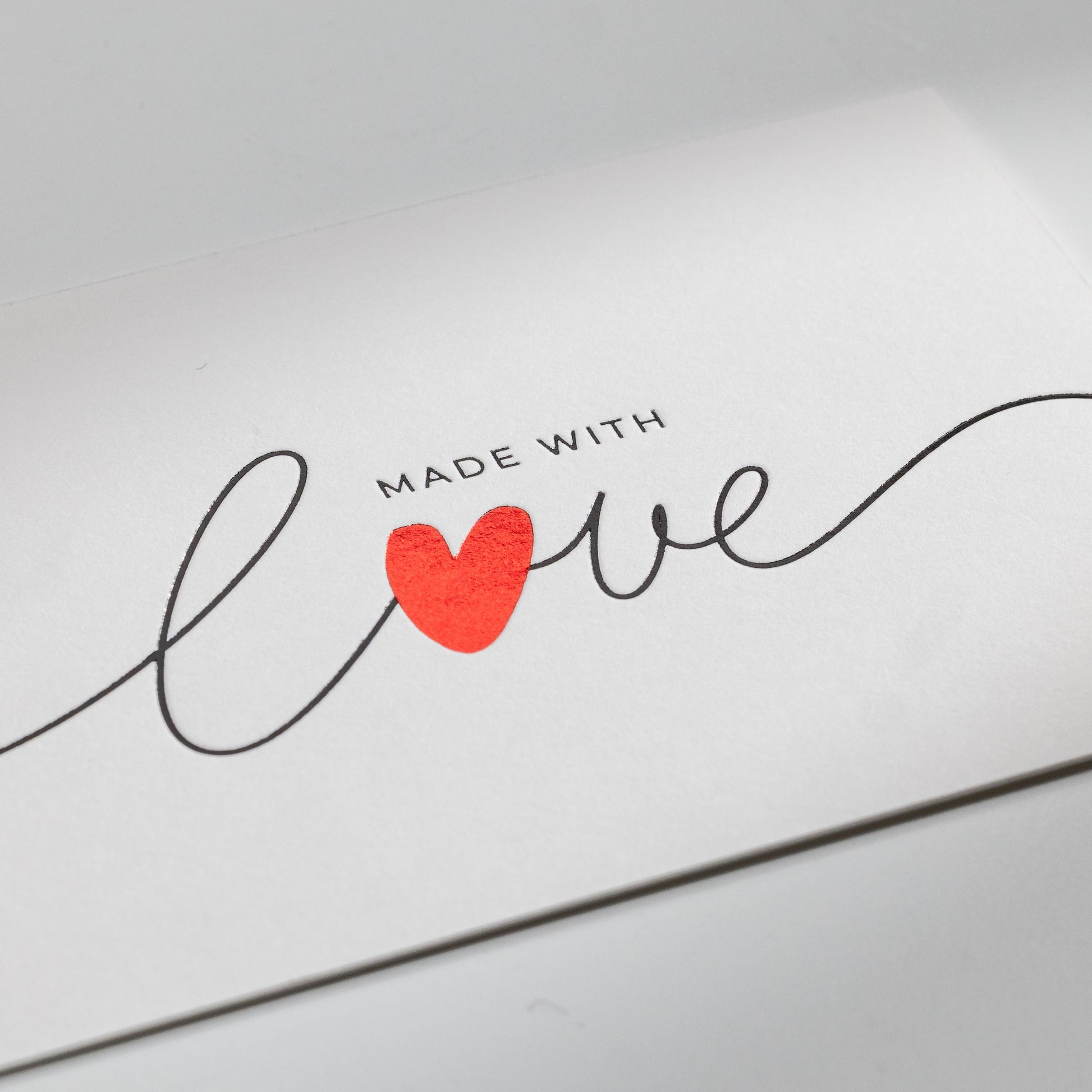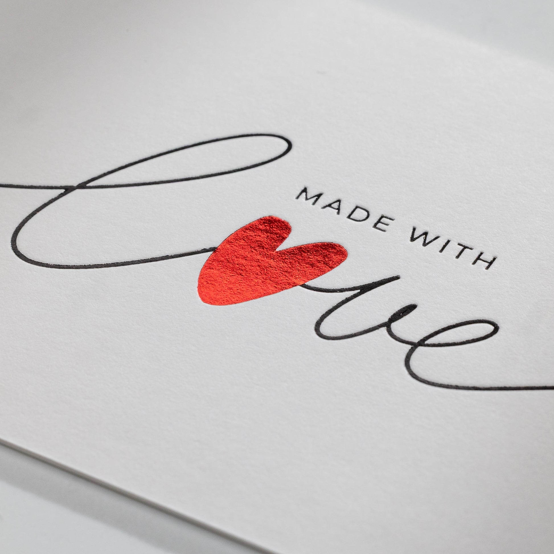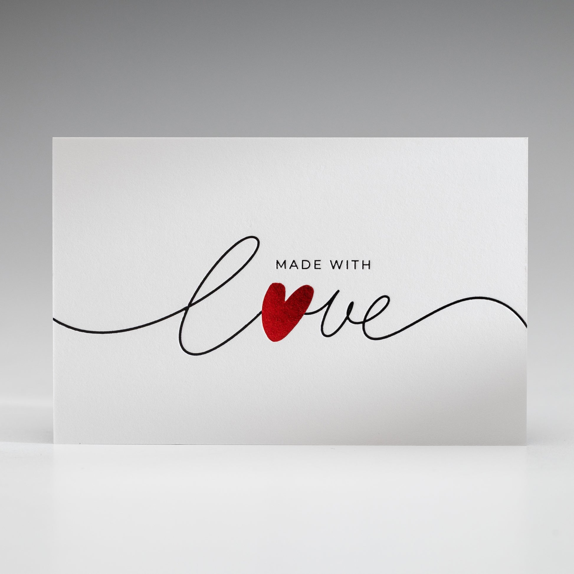 Visitenkartenkarton mit Heißfolienprägung: Beispiel MADE WITH LOVE