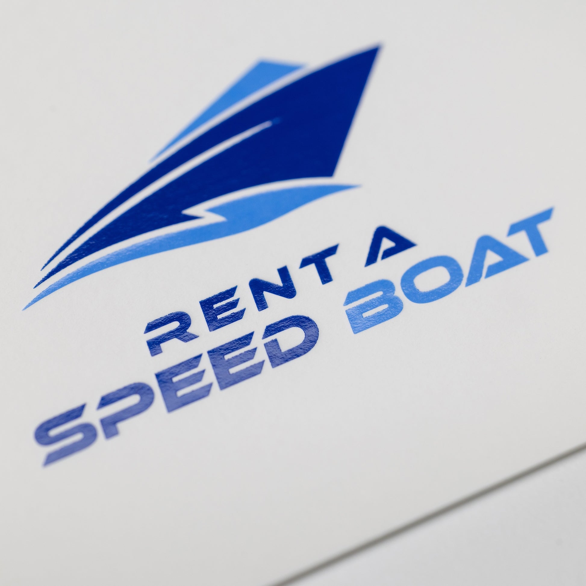 Metapaper Visitenkarten mit Heißfolienprägung: Beispiel RENT A SPEEDBOAT