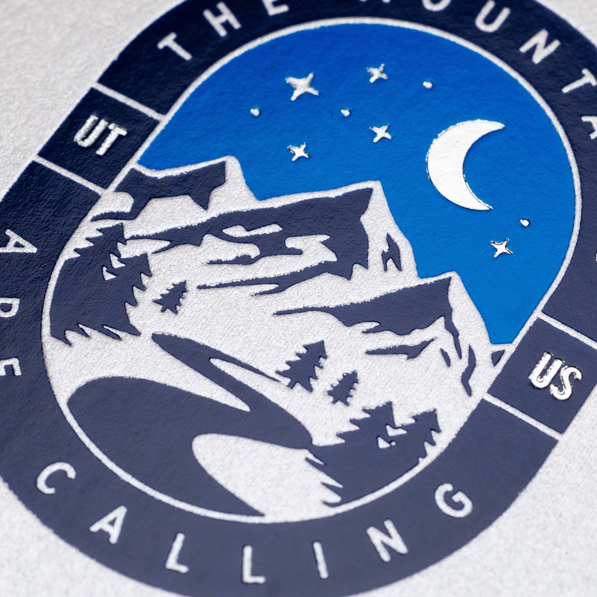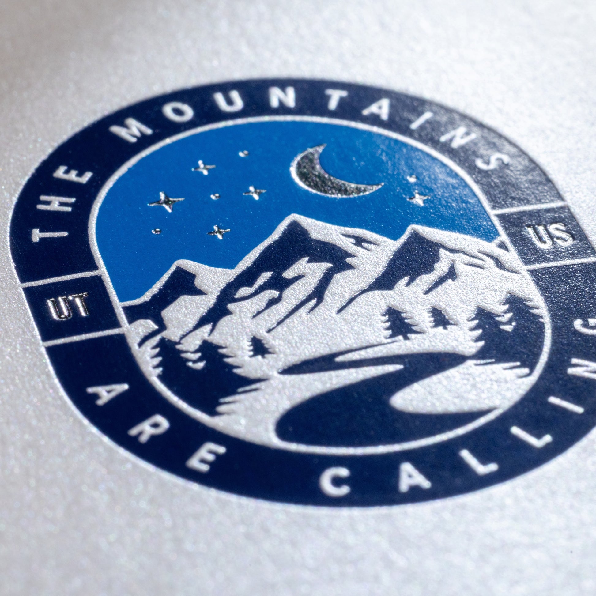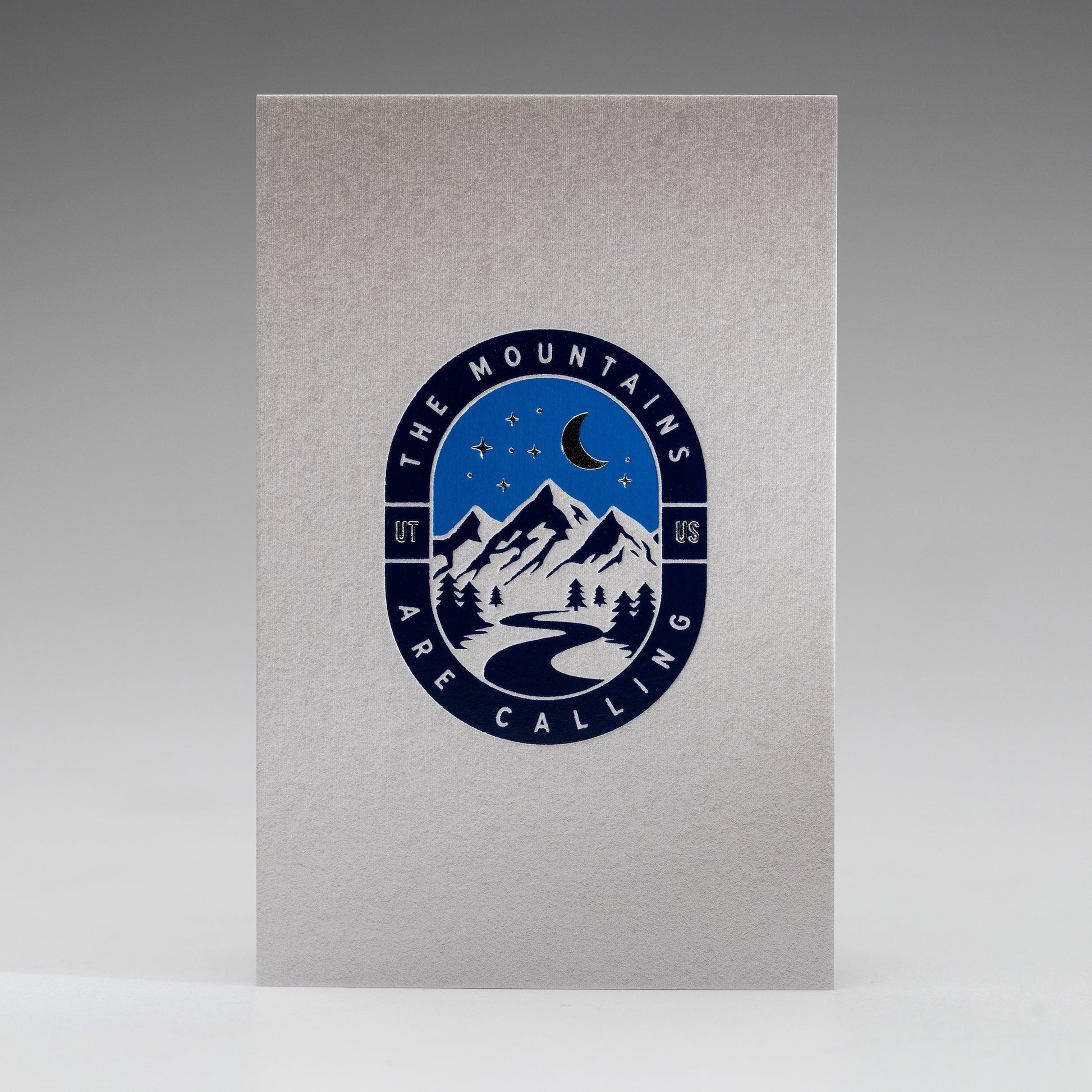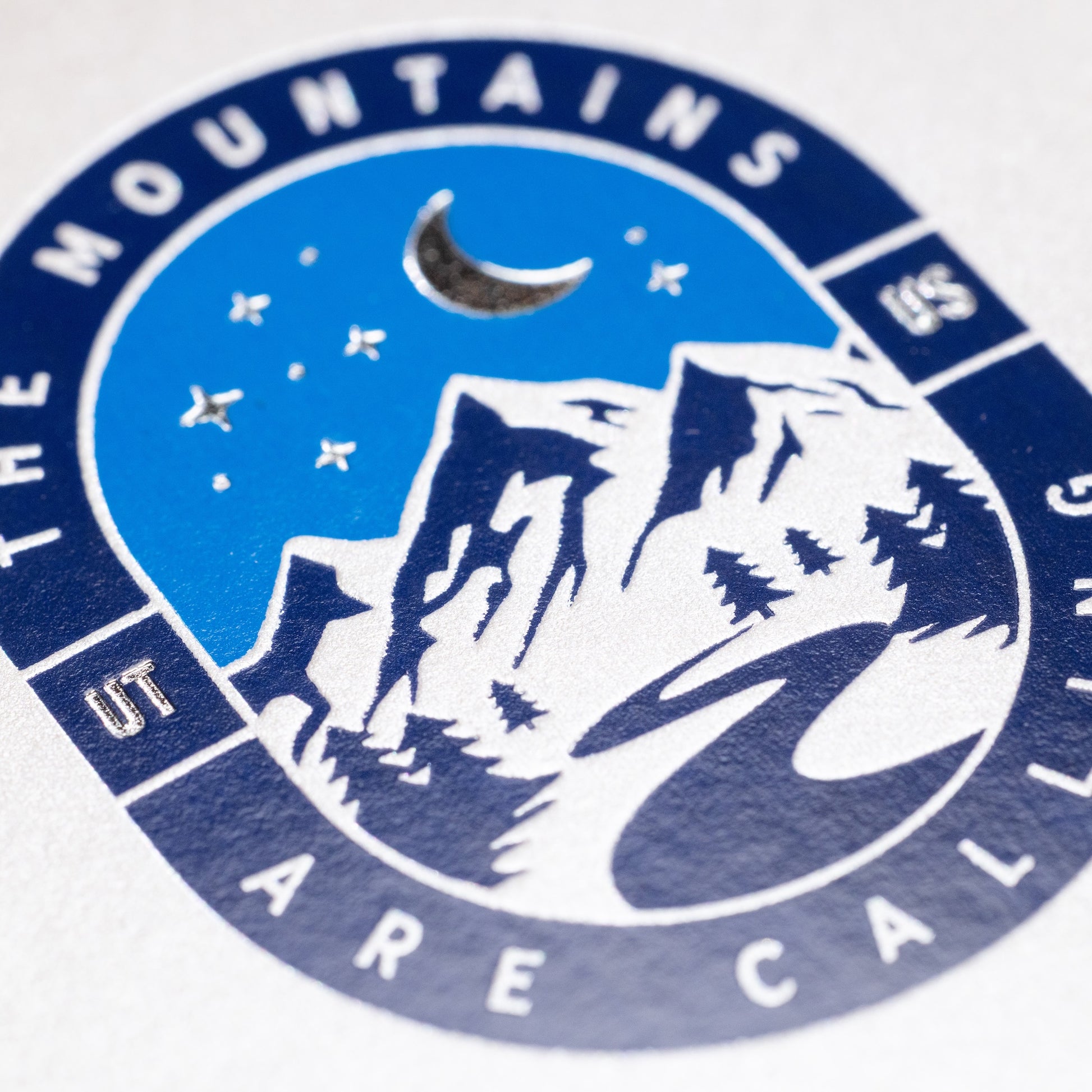 Gmund Upgrade, Visitenkarte mit glänzender Heißfolienprägung: Beispiel The Mountains are Calling
