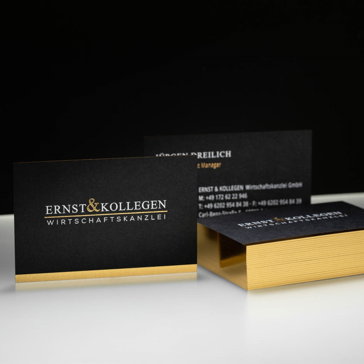 Für Ernst und Kollegen entstand eine schwarze Visitenkarte mit einer Gestaltung, die durch ihre Klarheit und hohe Wiedererkennbarkeit überzeugt.