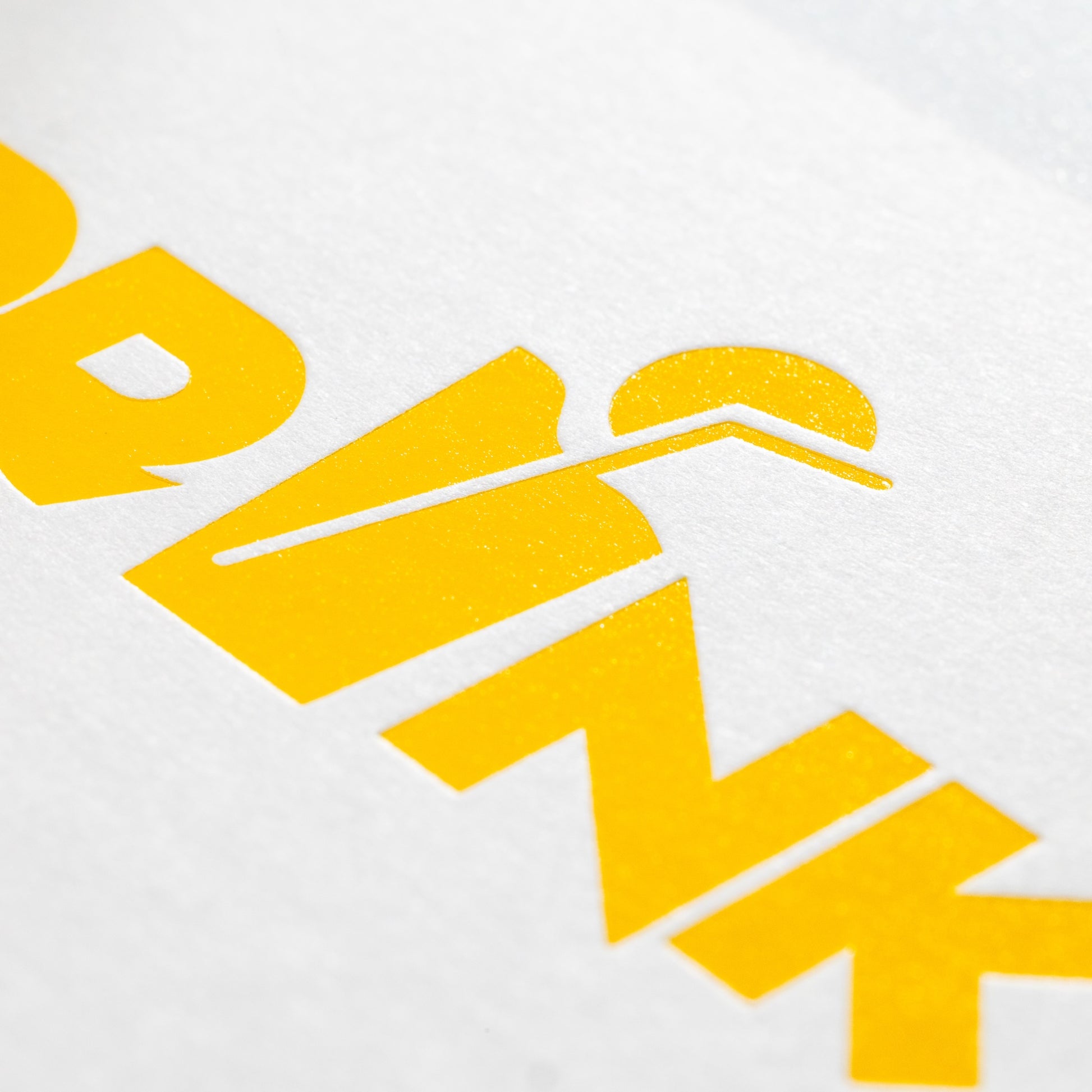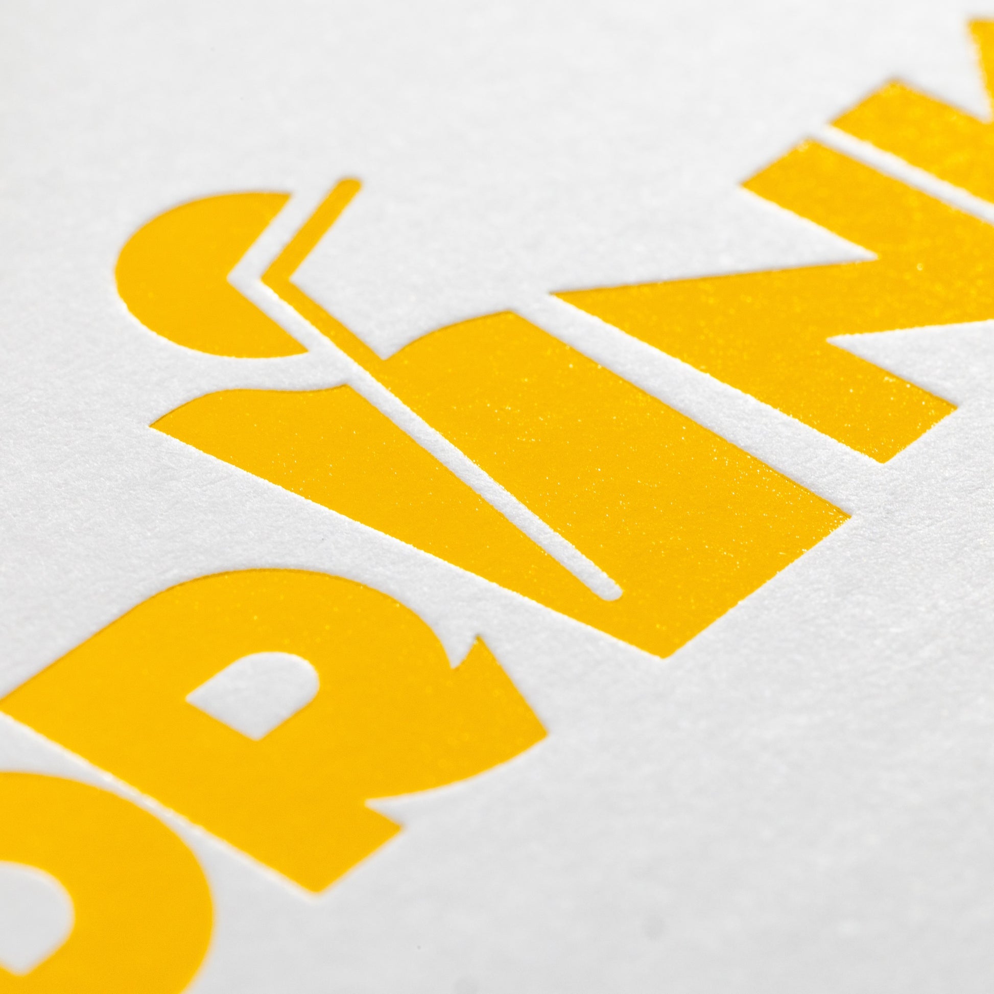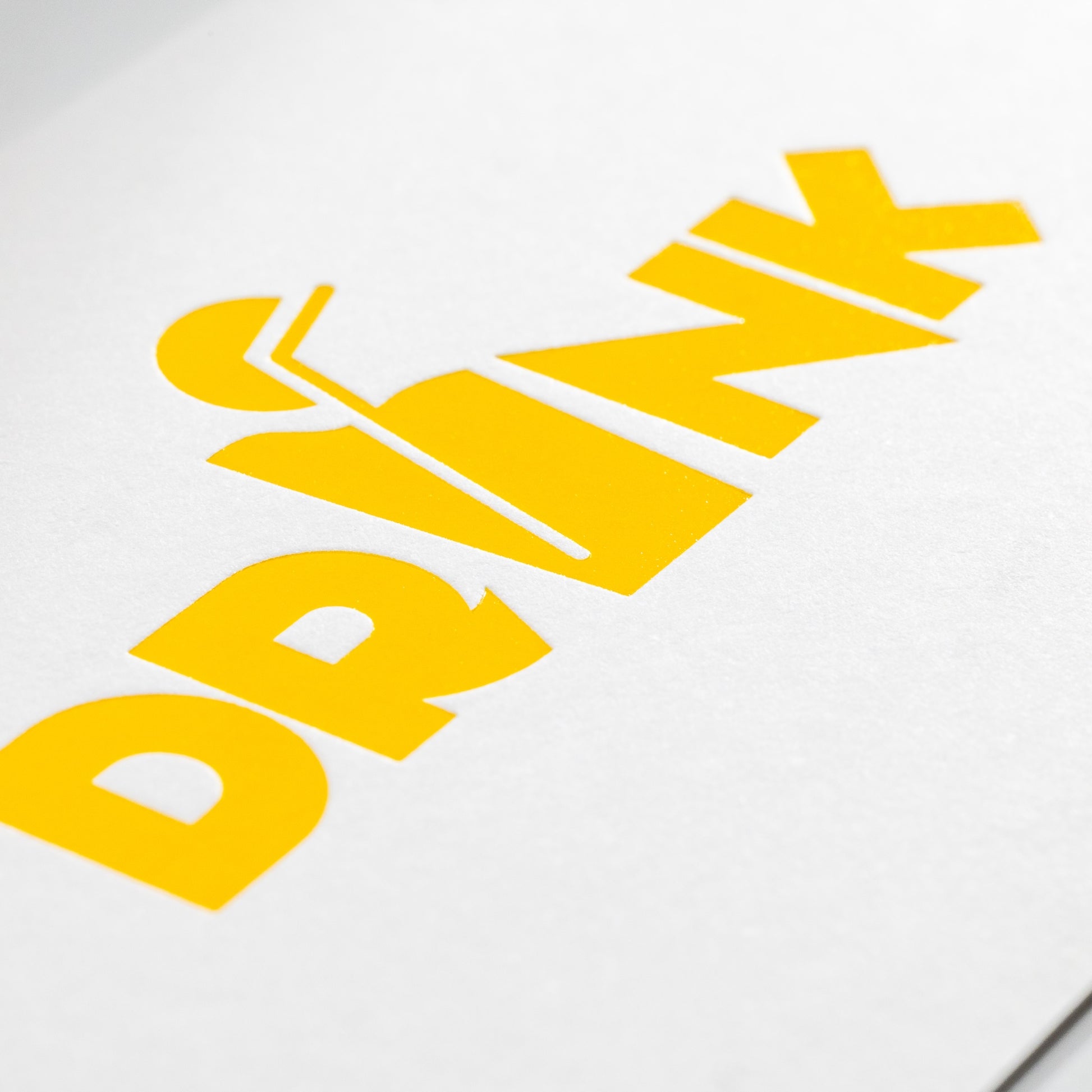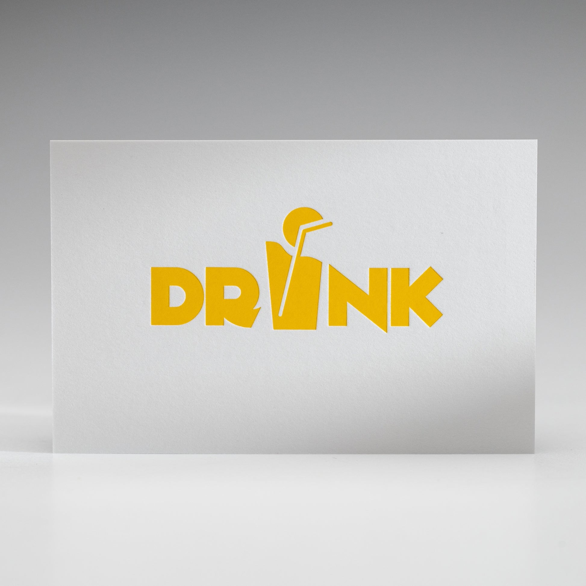 Visitenkarte mit Heißfolienprägung: Beispiel Drink gelb
