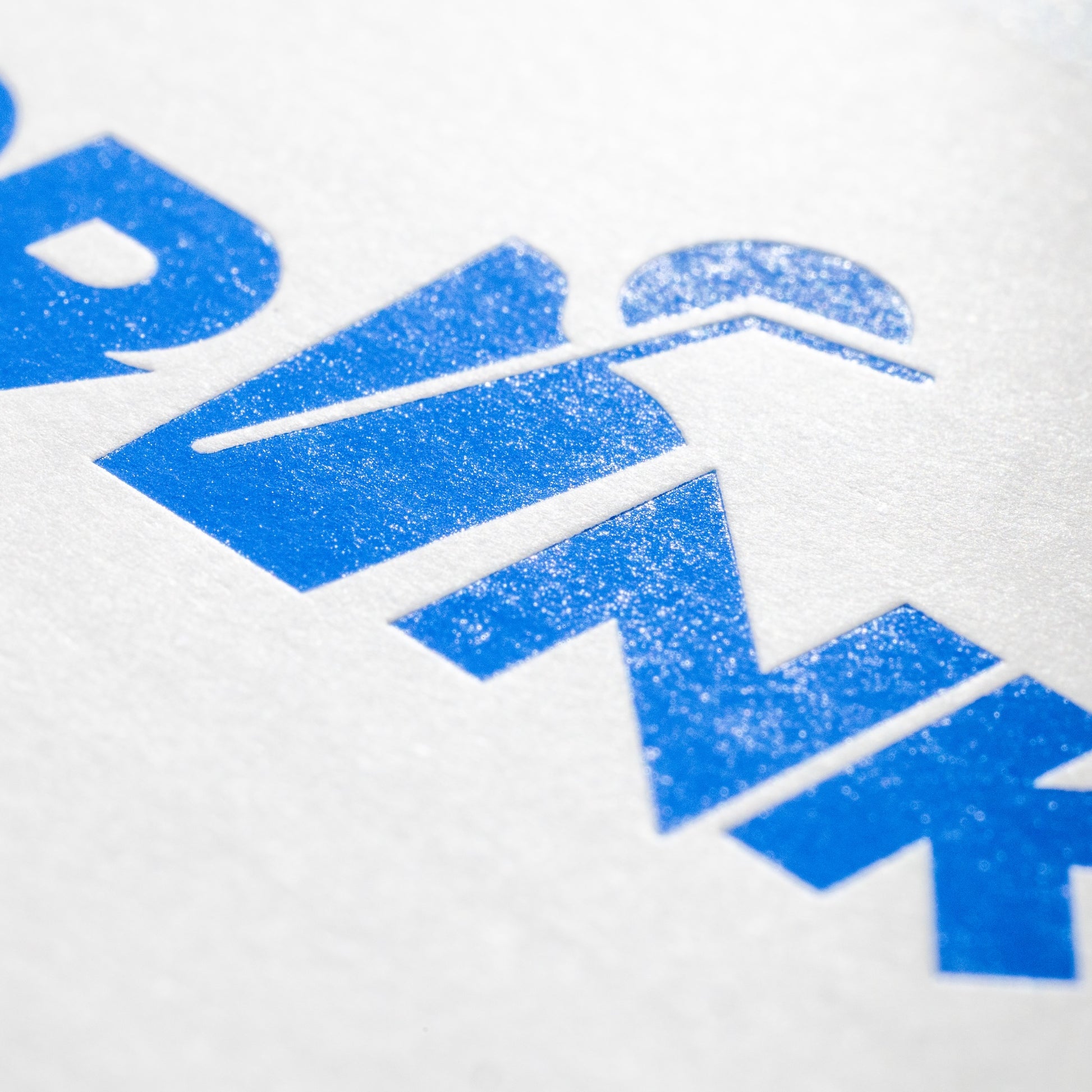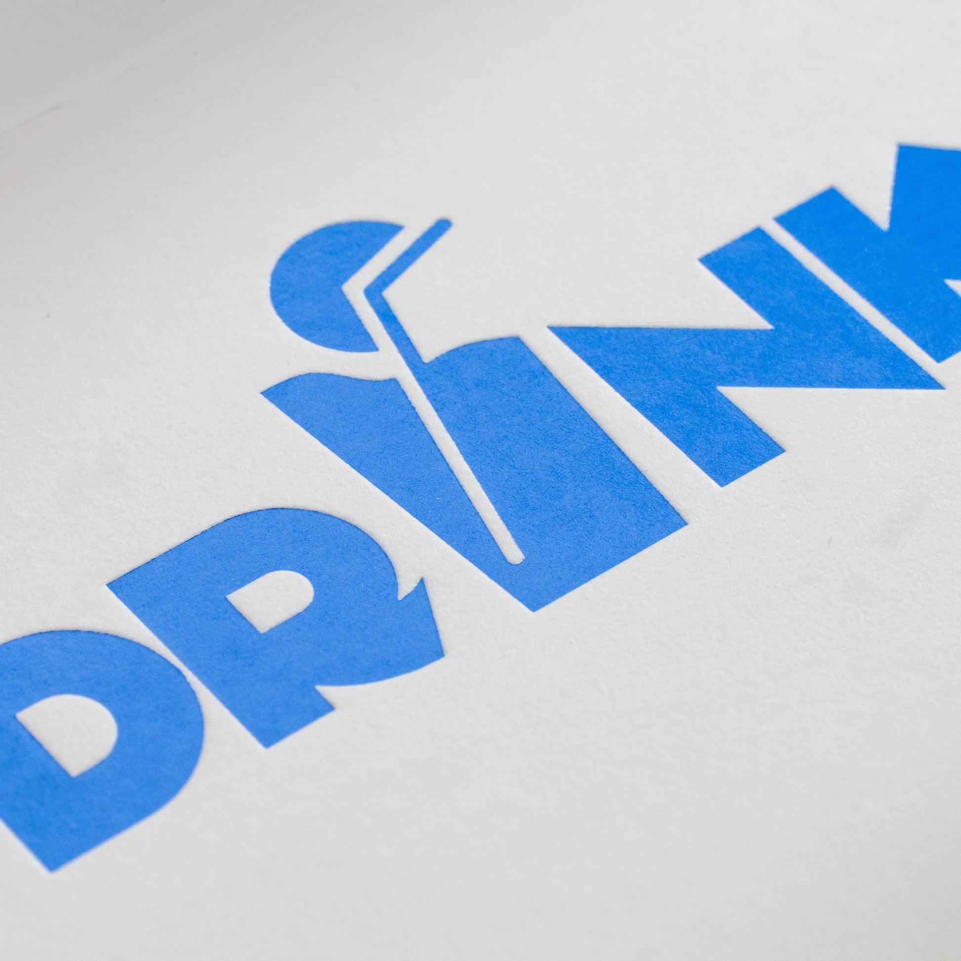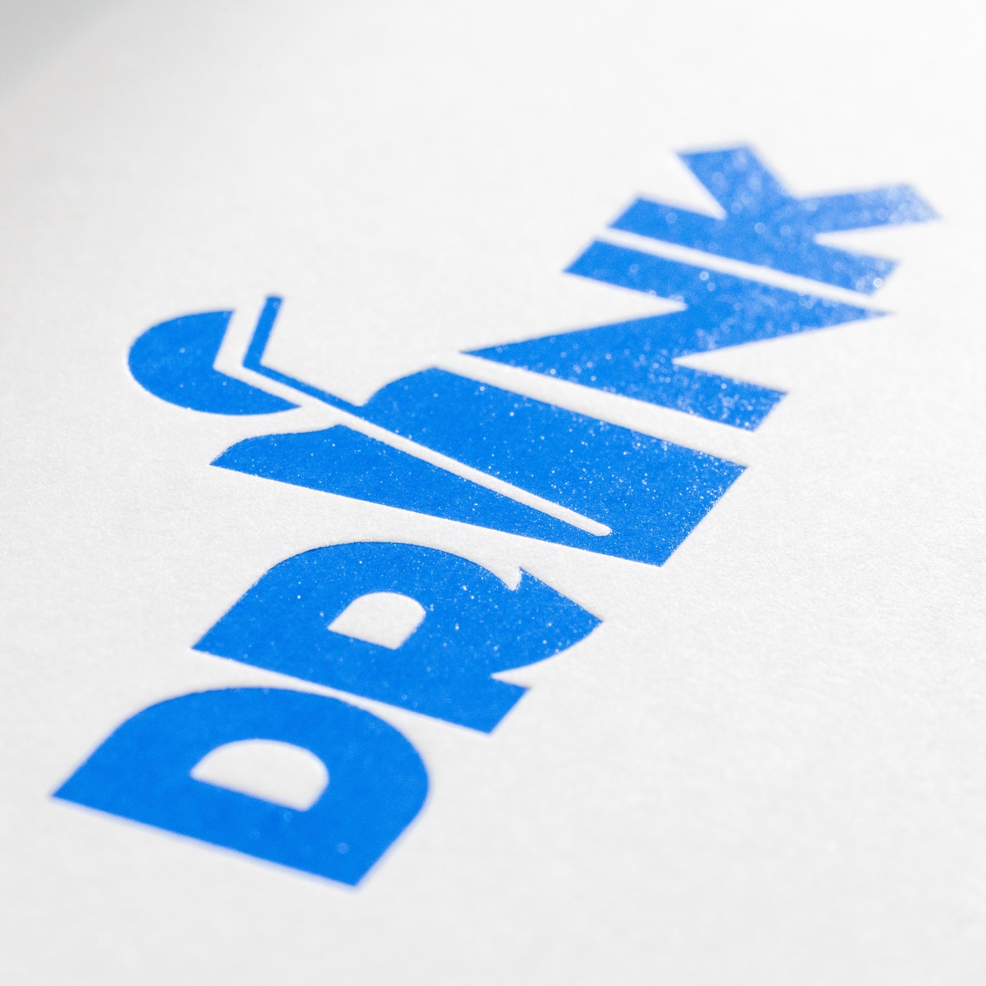 Visitenkarte mit Heißfolienprägung: Beispiel Drink blau