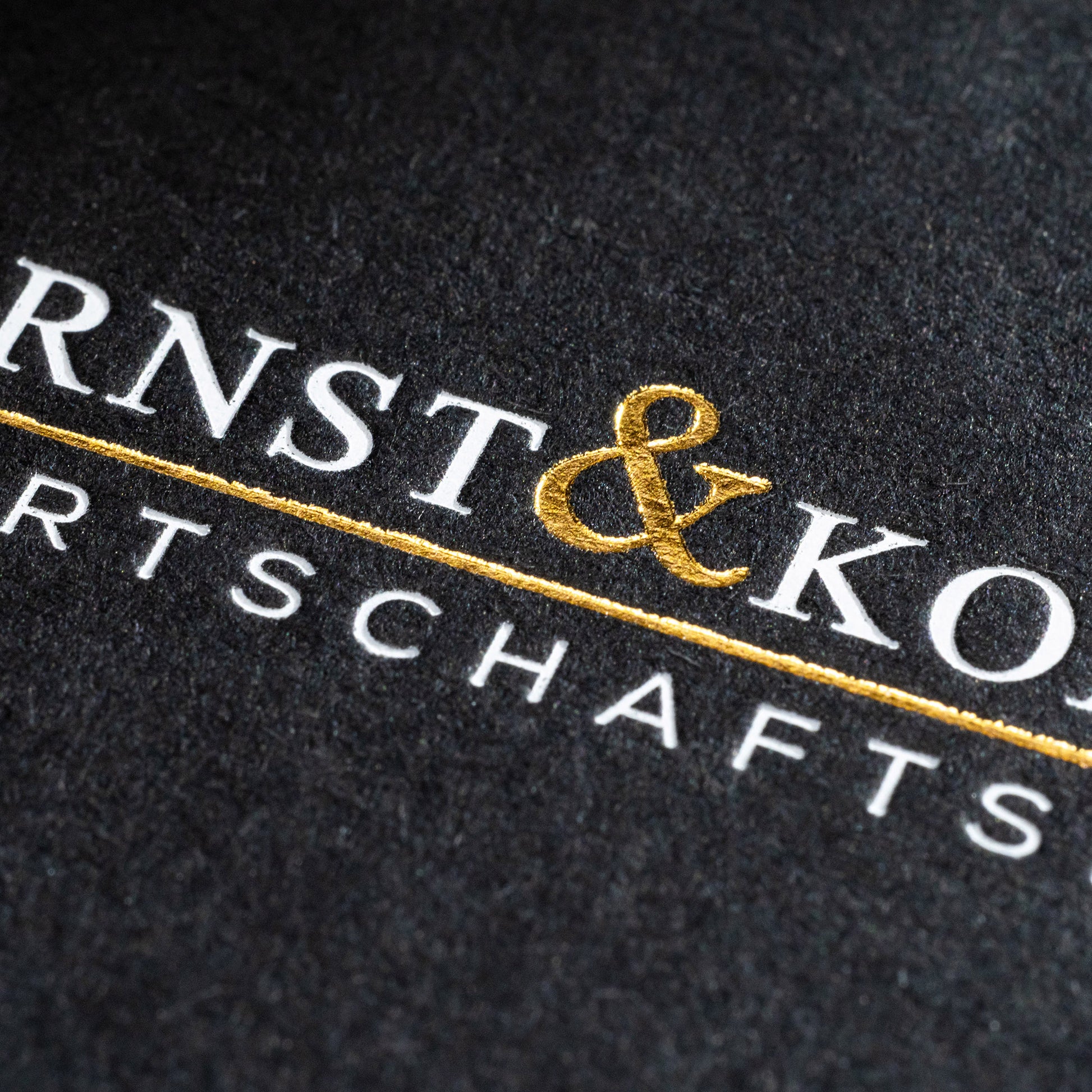 Für Ernst und Kollegen entstand eine schwarze Visitenkarte mit einer Gestaltung, die durch ihre Klarheit und hohe Wiedererkennbarkeit überzeugt.