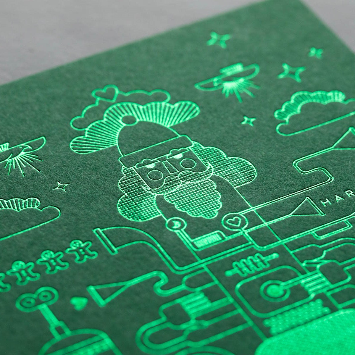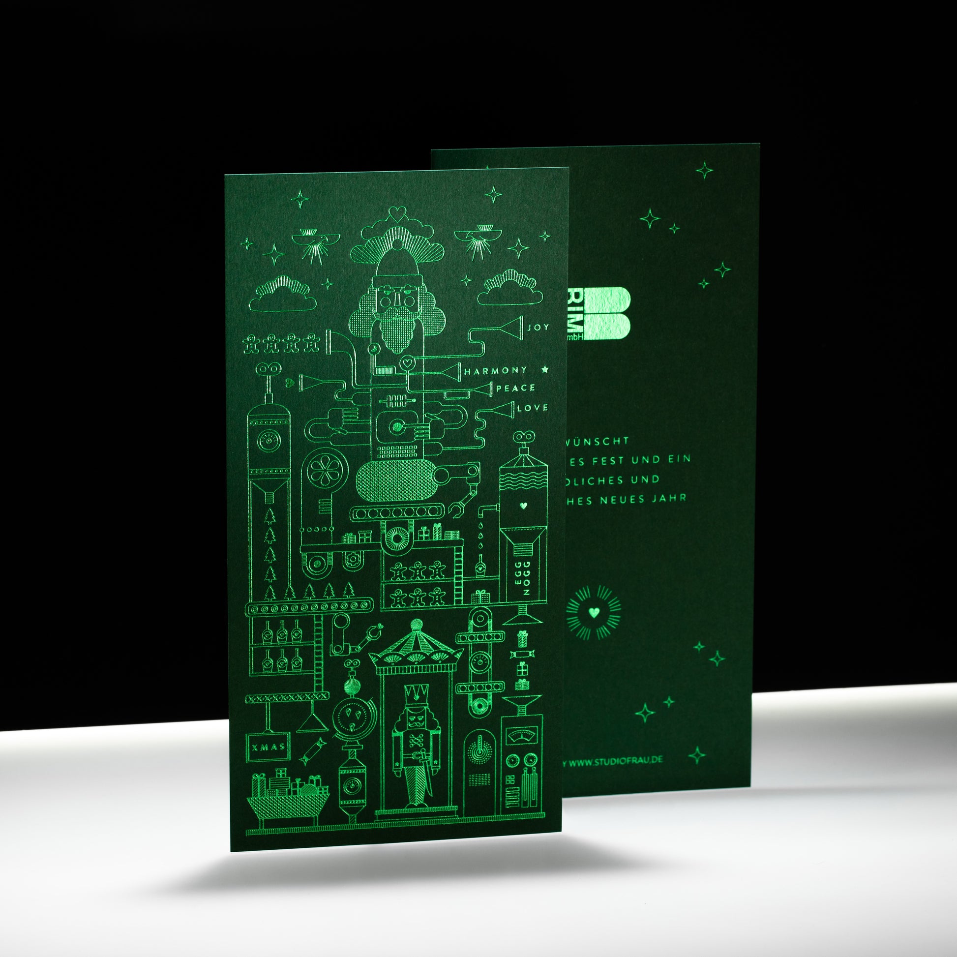 Das Prägeergebnis zeigt höchste Präzision und verleiht der Karte ihre besondere Wirkung. Jedes Jahr entsteht so ein neues Motiv – überraschend, reduziert und immer mit der besonderen Handschrift von Karoline Frau.