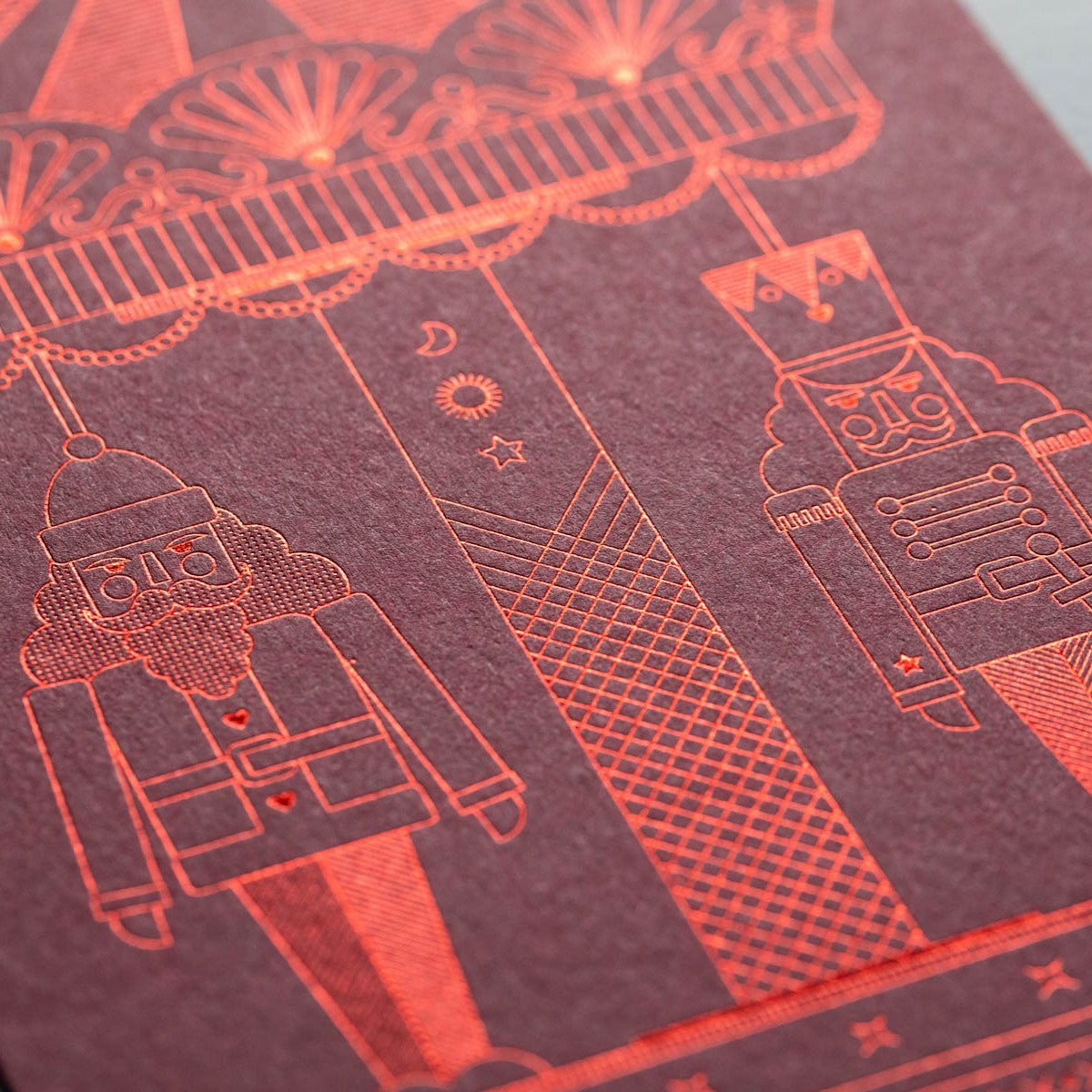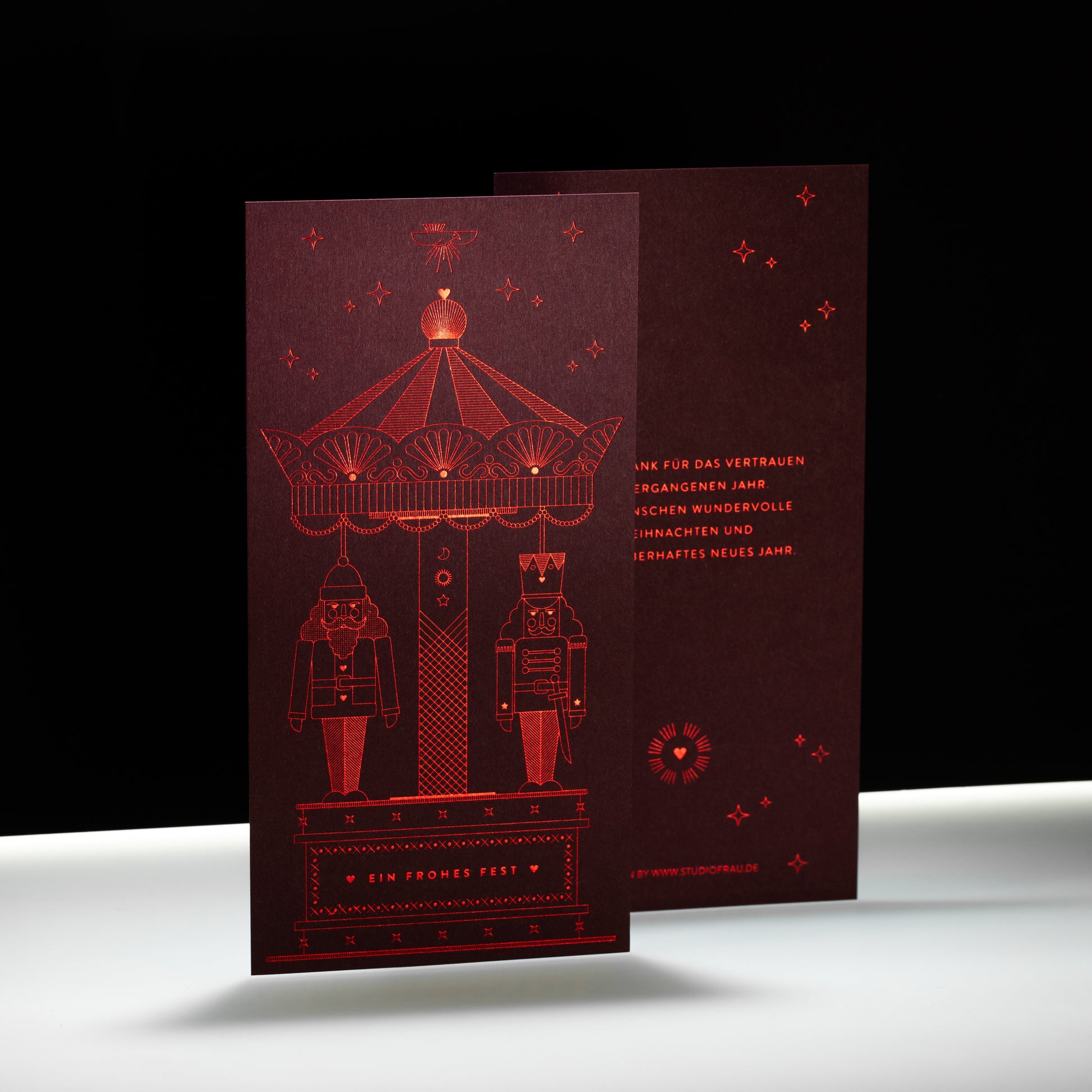 Das Prägeergebnis zeigt höchste Präzision und verleiht der Karte ihre besondere Wirkung. Jedes Jahr entsteht so ein neues Motiv – überraschend, reduziert und immer mit der besonderen Handschrift von Karoline Frau.